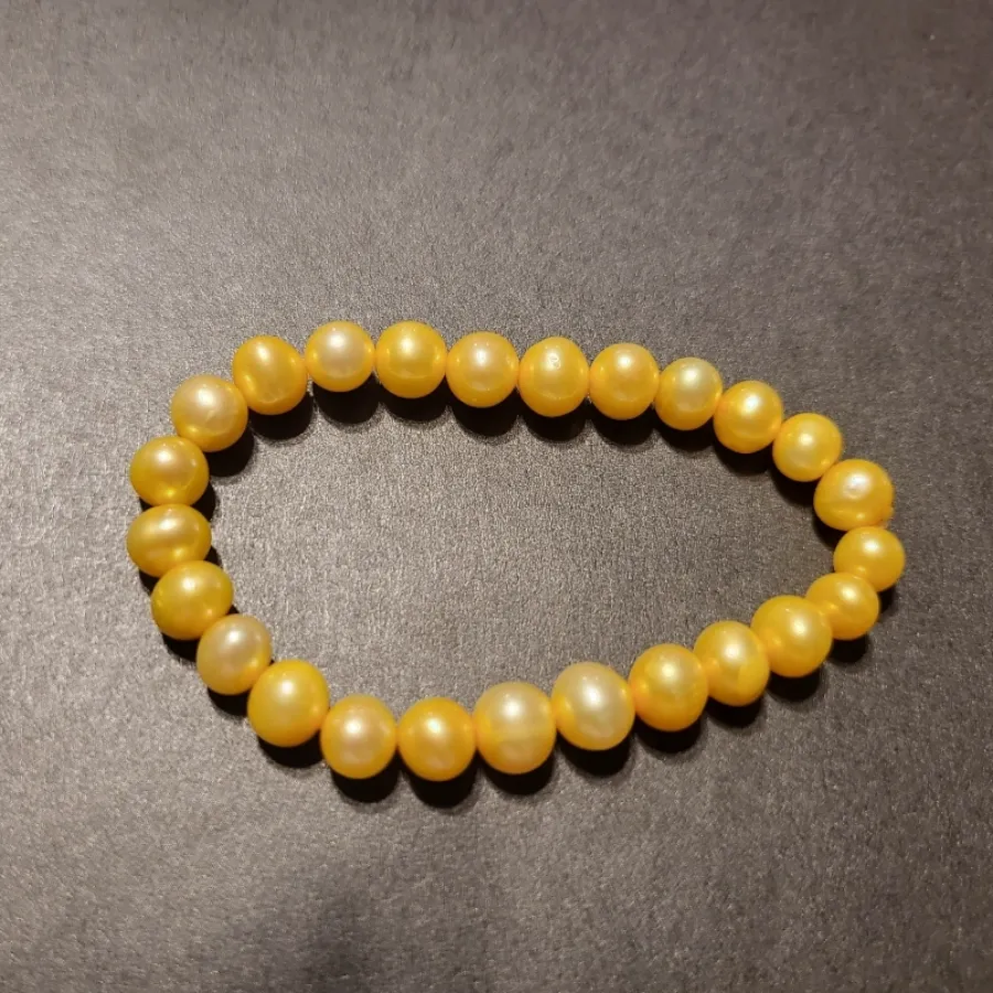 Yellowish orange beaded bracelet with pearls