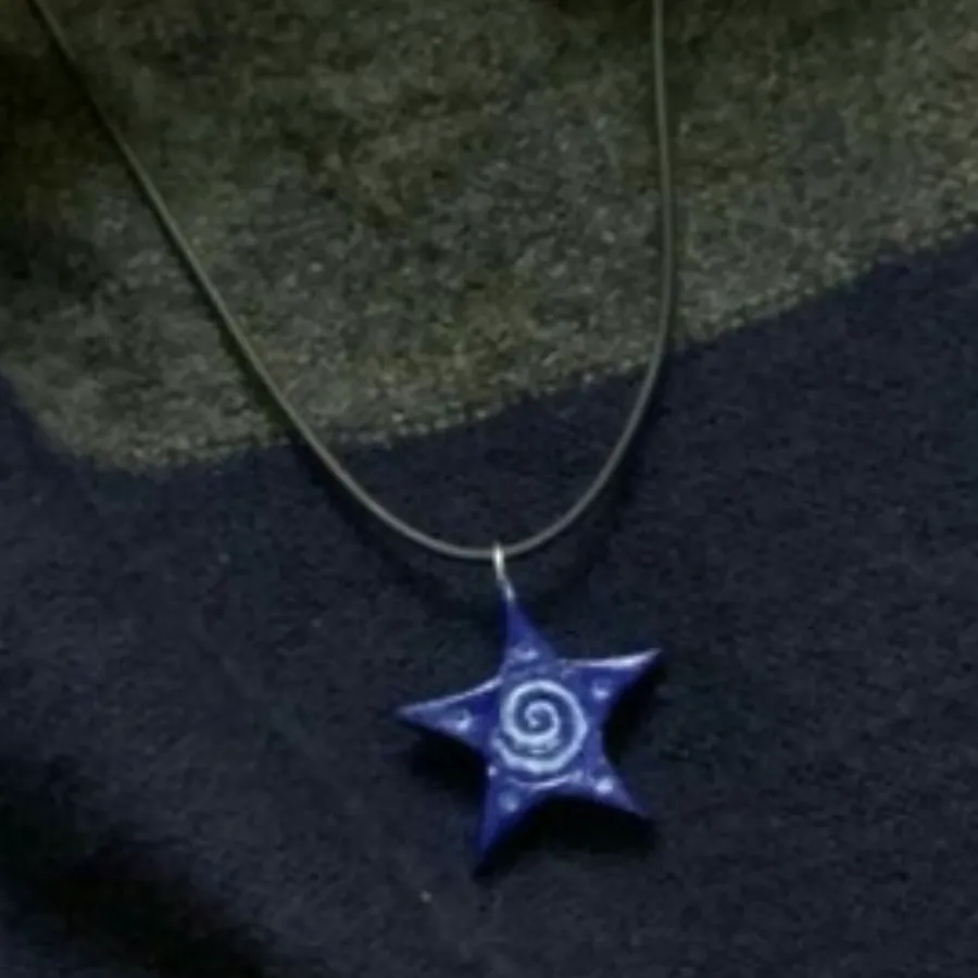 Blue star spiralo clay necklace Black leather