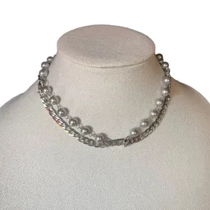 Pearl curled around silver necklace